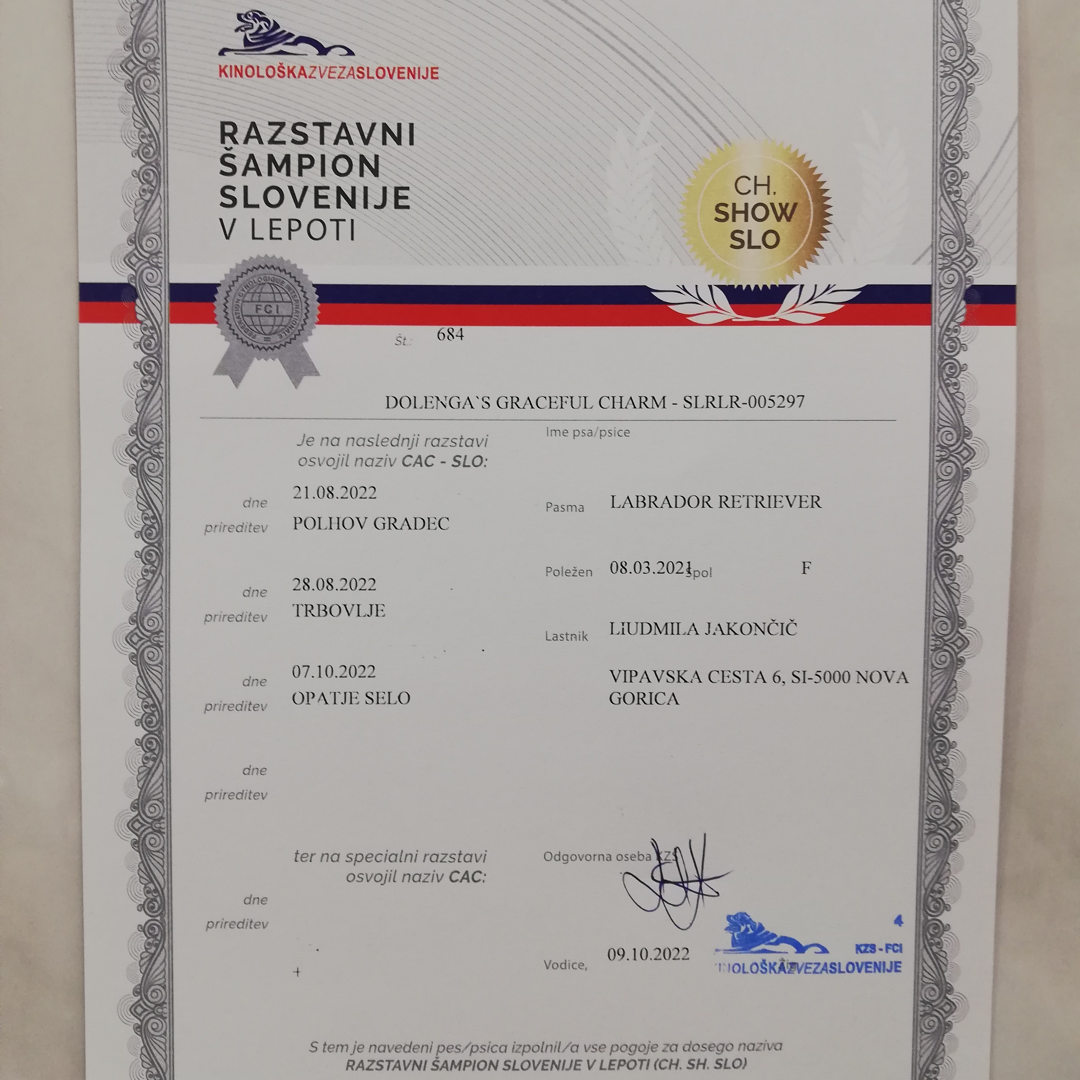RAZSTAVNI ŠAMPION SLOVENIJE V LEPOTI, CH. SHOW.SLO: